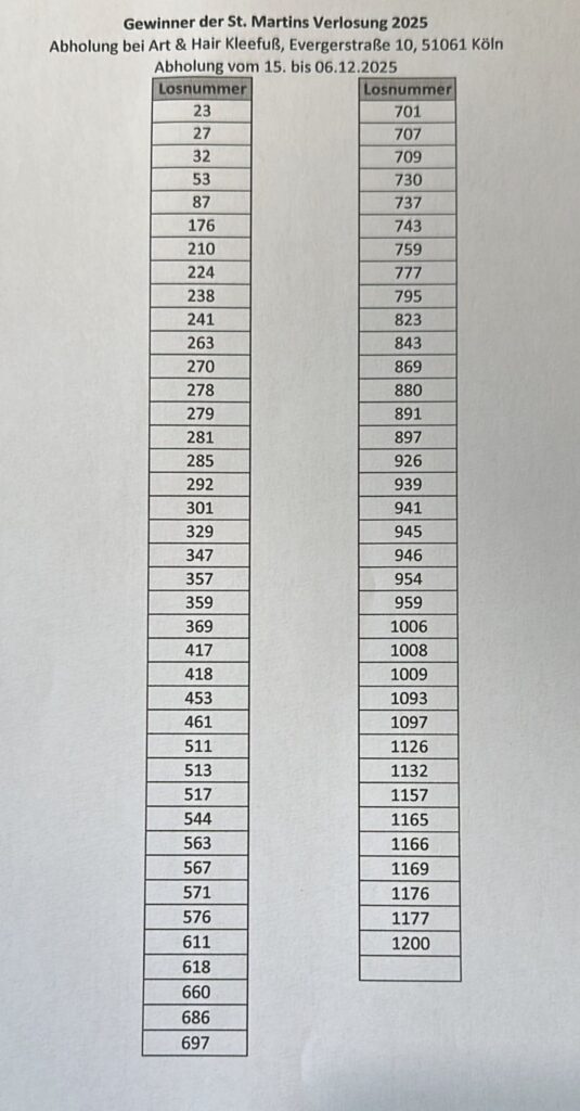 Hier finden Sie die Gewinnerlose der Sankt Martins-Verlosung 2025: